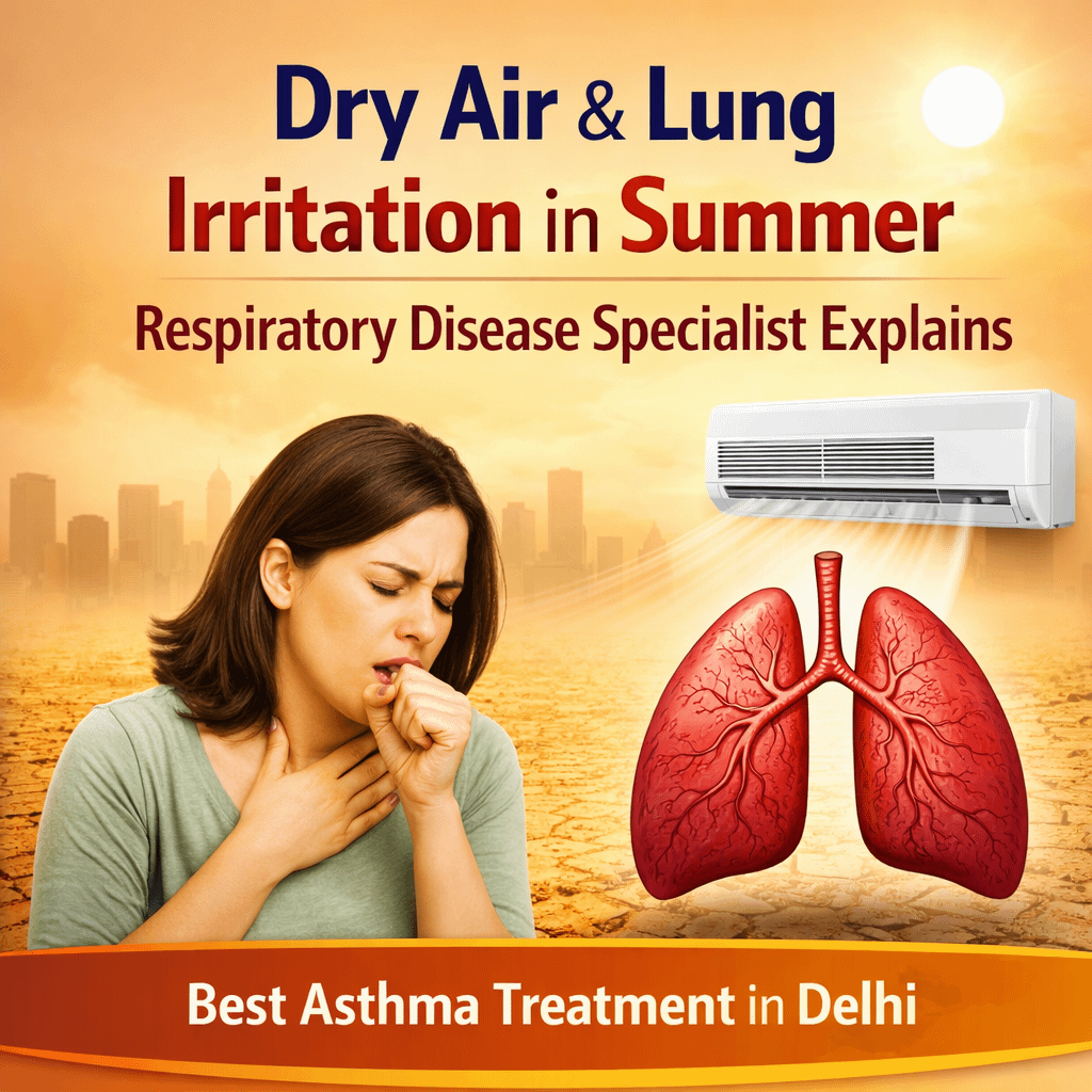 Summer in Delhi is often associated with extreme heat and rising temperatures, but one of the most overlooked factors affecting respiratory health is dry air. Low humidity levels combined with dust and pollution can irritate the airways and trigger various breathing problems.